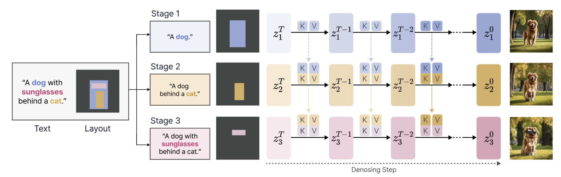 We introduced a training-free, stagewise diffusion framework that decomposes complex layouts into simpler sub-scenes. The method progressively grounds objects through joint autoregressive sampling, while earlier stages form a persistent scene scaffold. I also worked with constraint-aware attention mechanisms, balancing current-object emphasis and global scene consistency.